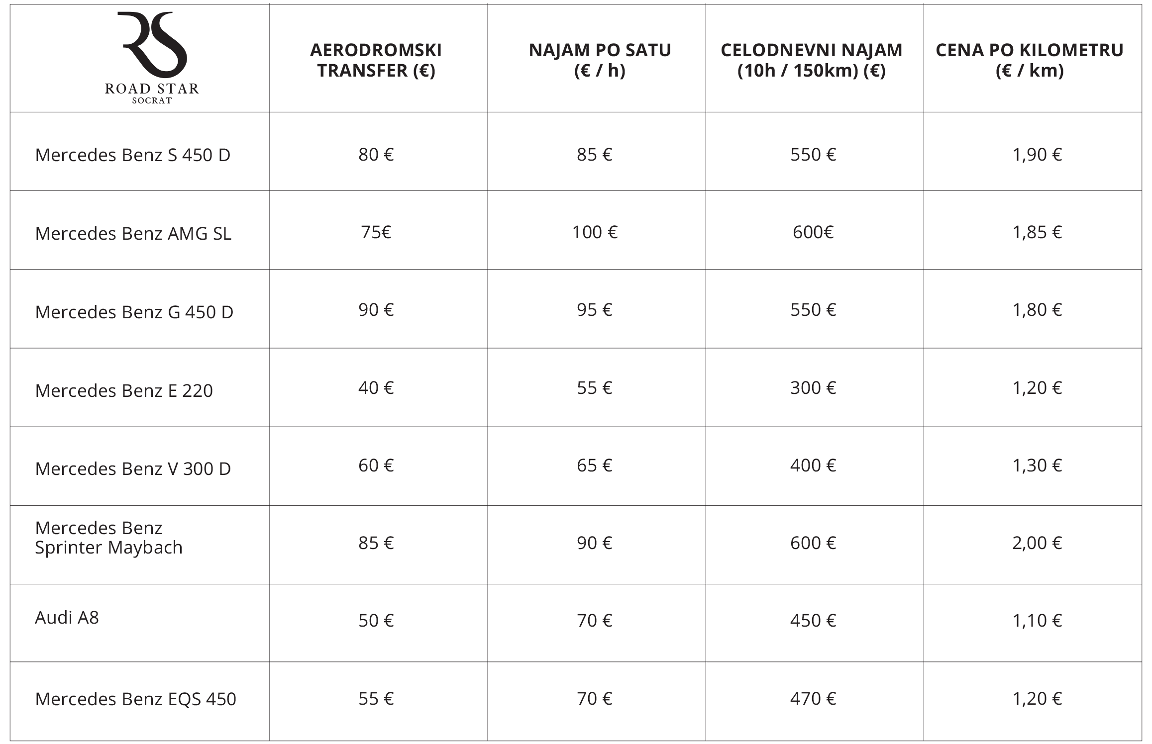 Neka vaša specijalna prilika bude nezaboravna uz luksuznu uslugu transfera Socrat Road Star. Bilo da je u pitanju venčanje, gala večera ili bilo koja značajna proslava, obezbeđujemo sofisticiranu i udobnu vožnju u premium vozilima. Vaš lični vozač obezbeđuje besprekorno iskustvo, prilagođeno vašim zahtevima.